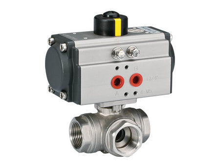 H.A.K. Pneumatic Three-way Stainless Steel Actuated Ball Valve - Double Acting