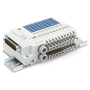 SJ1000 Plug-in connector type manifold with D-sub, Flat Ribbon connection. Up to 24 solenoids can be connected.